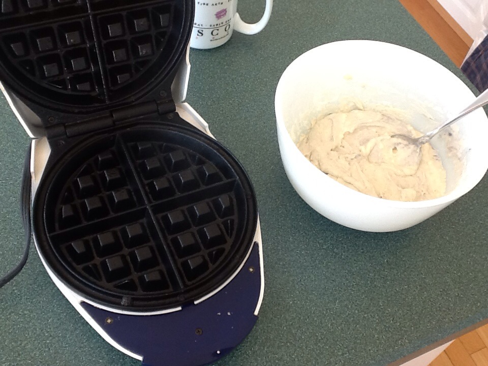 Get your waffle iron heating while you make the batter, and if you are making several waffles, set the oven to low to keep them warm while you cook all the waffles. Our iron is a single so I have to make the waffles one at a time.