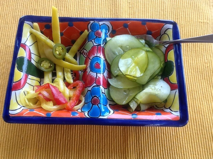 We have eaten cucumber salads, cucumbers in salads, and just sliced cucumbers with salt and pepper. Not to complain, but we were starting to get a little tired of eating one or two cucumbers a day.