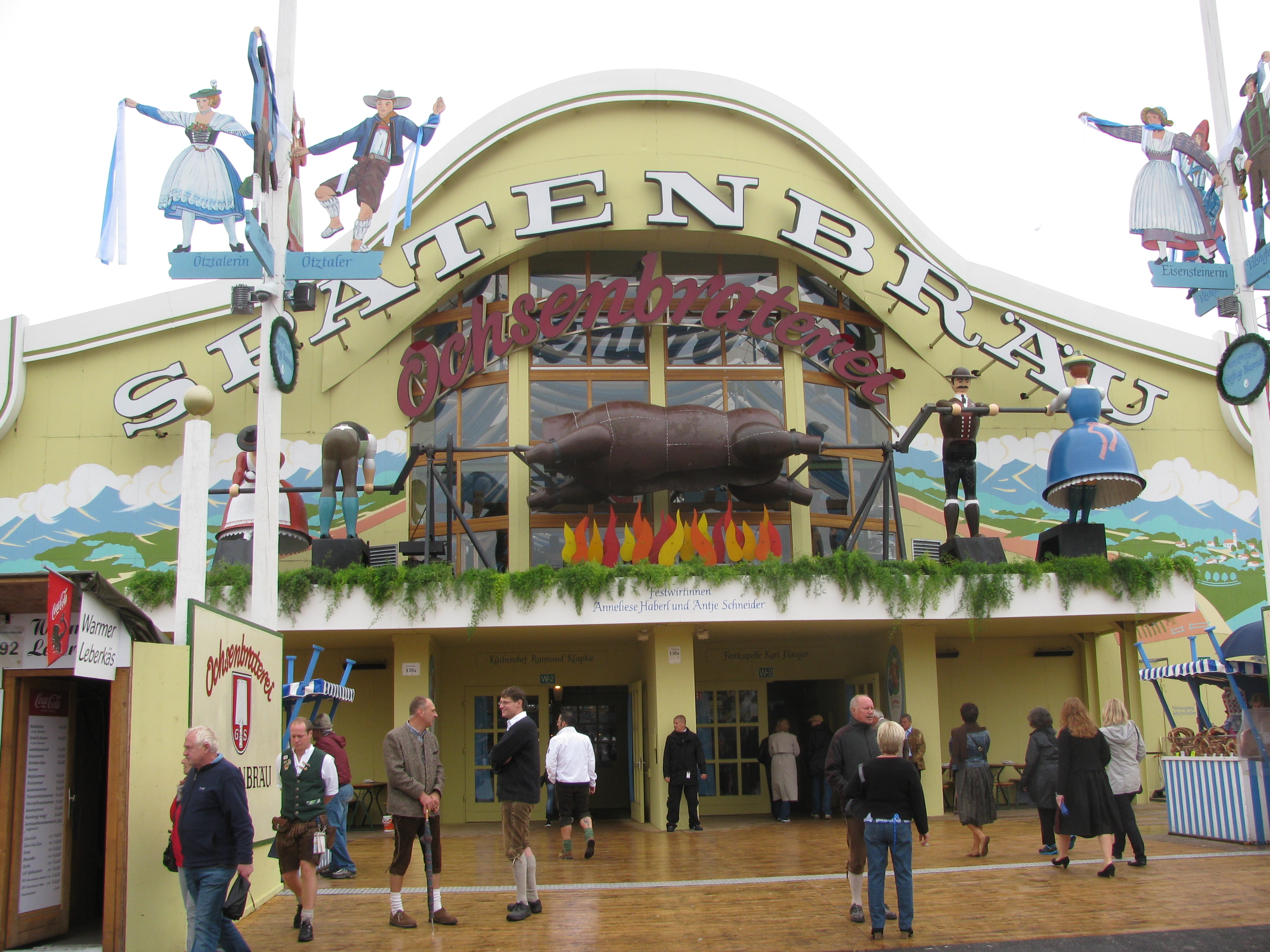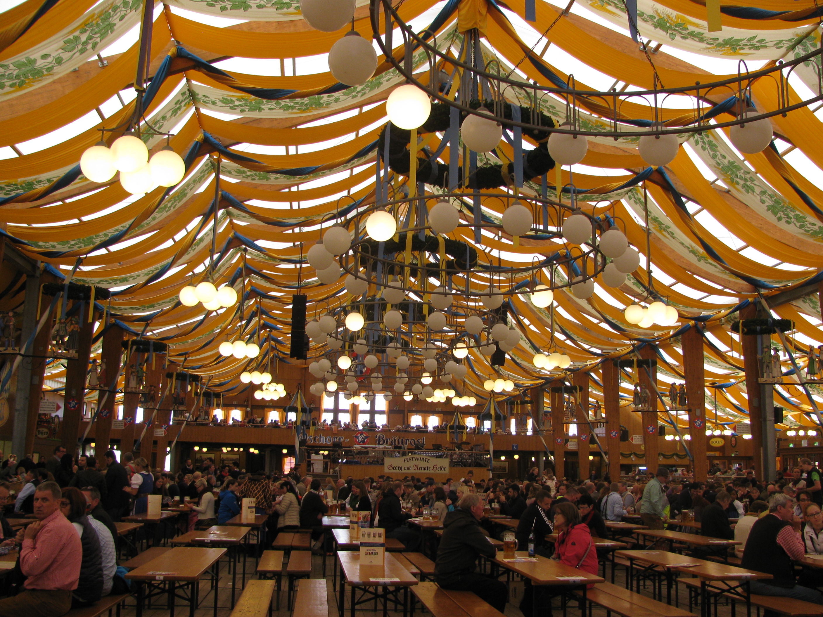 Words and pictures don’t really convey the atmosphere and setup of Oktoberfest. The grounds are huge. There are rides, carnival games, food stations, souvenir sales, and the massive beer tents that make Oktoberfest famous. Each beer company has a tent, and inside are rows and rows of tables, box seating that can be rented, a band in the centre playing “oom-pah-pah” music all day long, food, and of course the massive mugs of beer – 1 litre each! Just watching the servers carry up to seven in each hand is entertainment. According to Wikipedia, 7.7 million litres of beer were served in 2013.