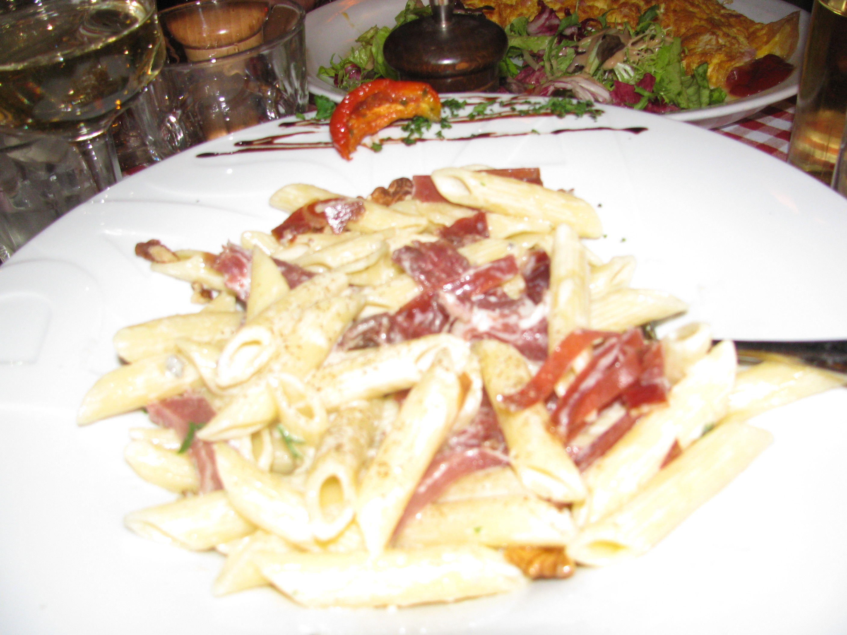My favourite meal in Paris was penne with Roquefort cheese, chunks of prosciutto and walnuts. Not everyone likes blue cheese, but the sauce was tasty without being overbearing.