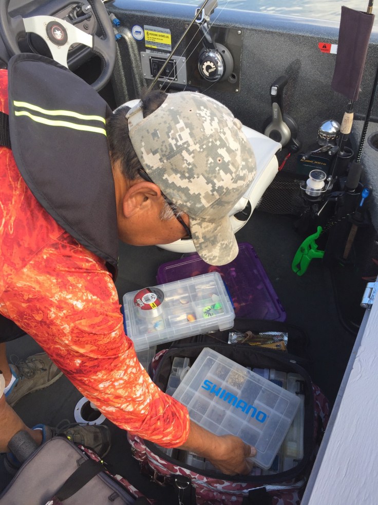 Since there would be four of us fishing this day, we took the big boat. It reaches top speeds of about 60 miles per hour so the ride to the fishing hole is fast and smooth. It’s equipped with a smaller motor and two trolling motors so it can handle any fishing situation.