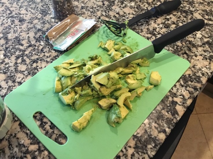 - 3 large, ripe soft avocados, pitted, peeled and roughly diced